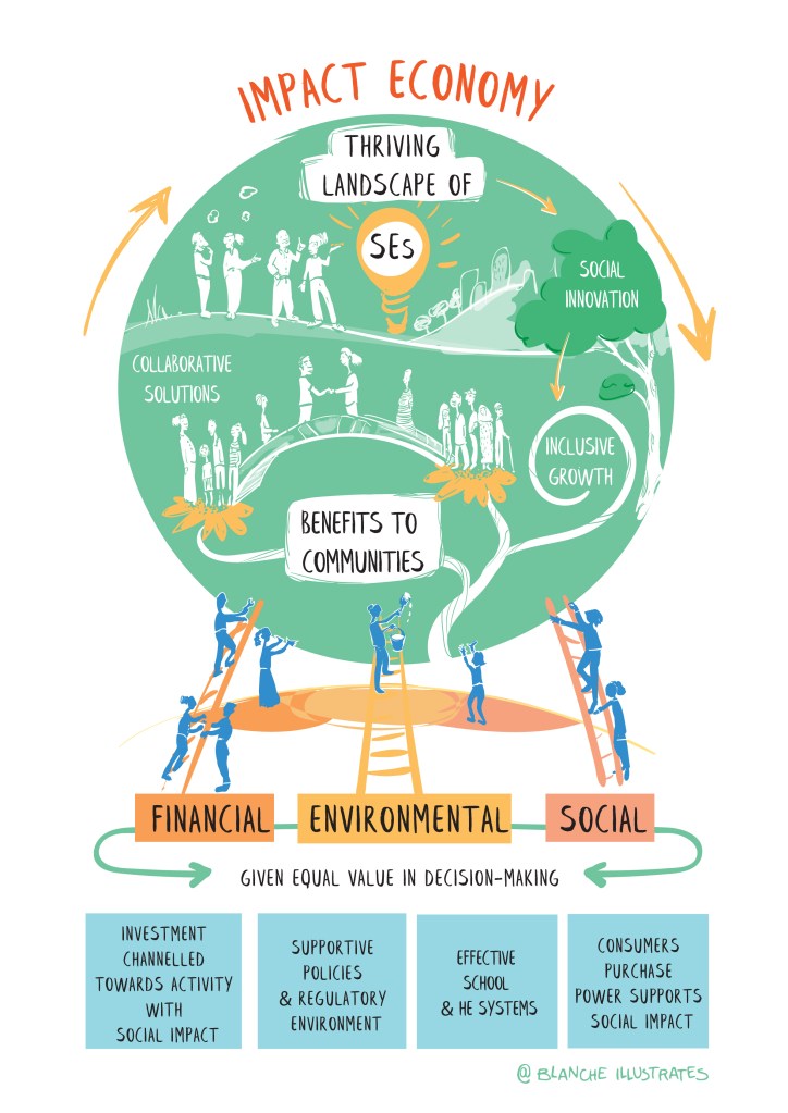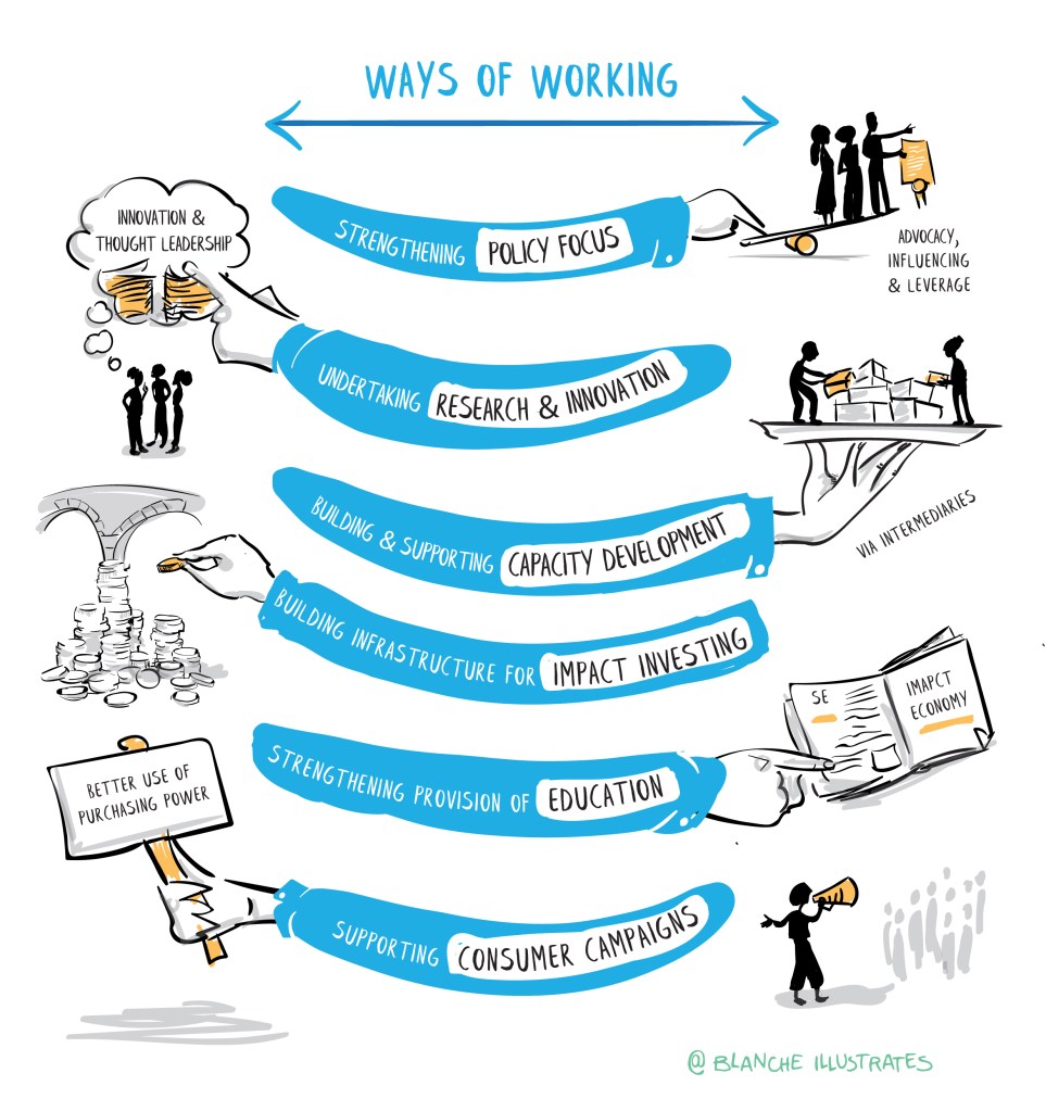 I also create post-event illustrations, from rich-pictures that organise the information gathered in a sense-making visual narrative, to bite-size graphics that highlight particular outcomes or illustrations for follow up reports, blog posts or landing pages.